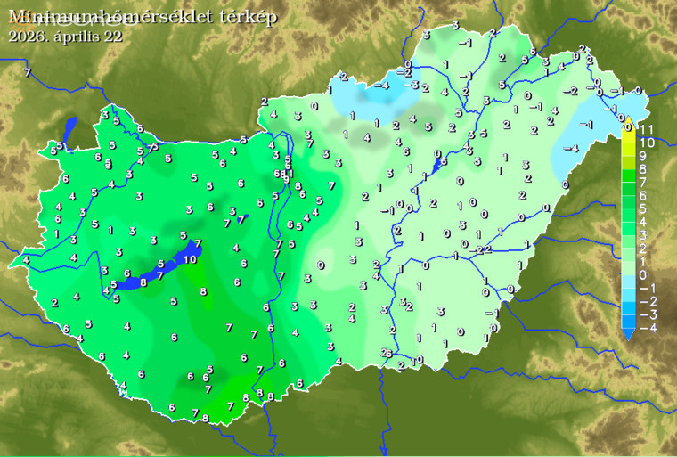 Zabaron volt a leghidegebb -4 fokot mértek, emellett a Nyírségben és az Alföld többi részén foltokban csökkent 0 fok alá a hőmérséklet.