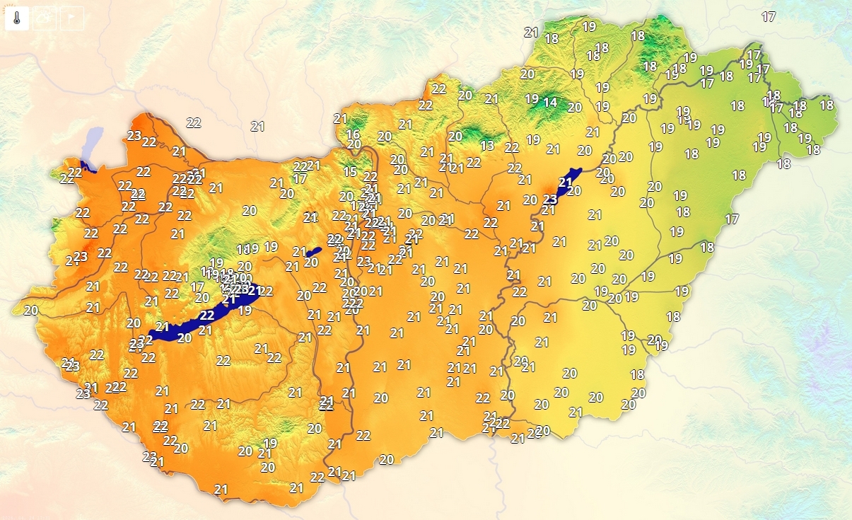 Többfelé emelkedett 20 fok fölé a hőmérséklet, 20 fok alatti értékeke csupán keleten fordulnak elő.